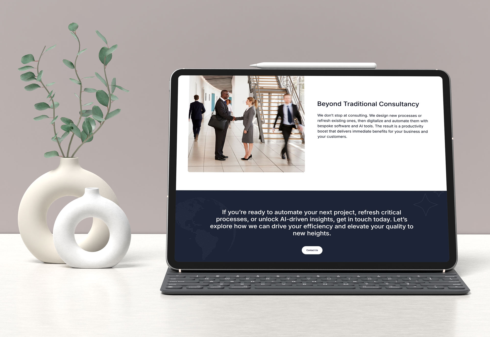 “Designing a digital experience that reflects the consultancy's commitment to blending management strategy with cutting-edge software and AI development. The website enhances the consultancy’s presence while showcasing their expertise in transforming businesses through seamless, automated workflows.”